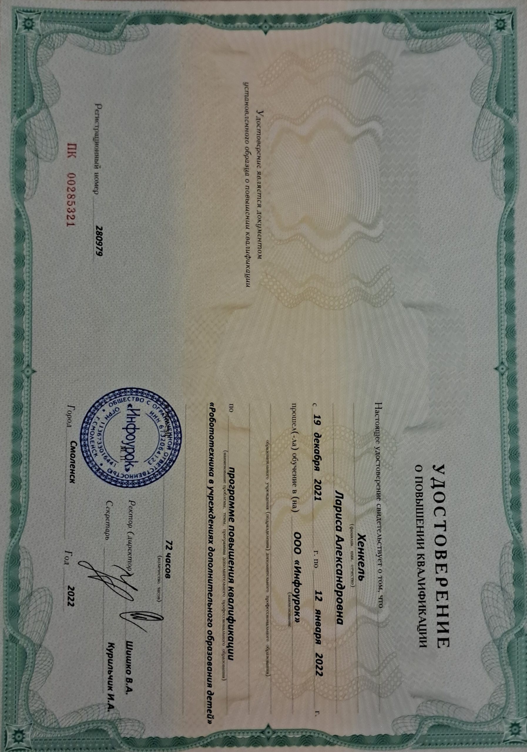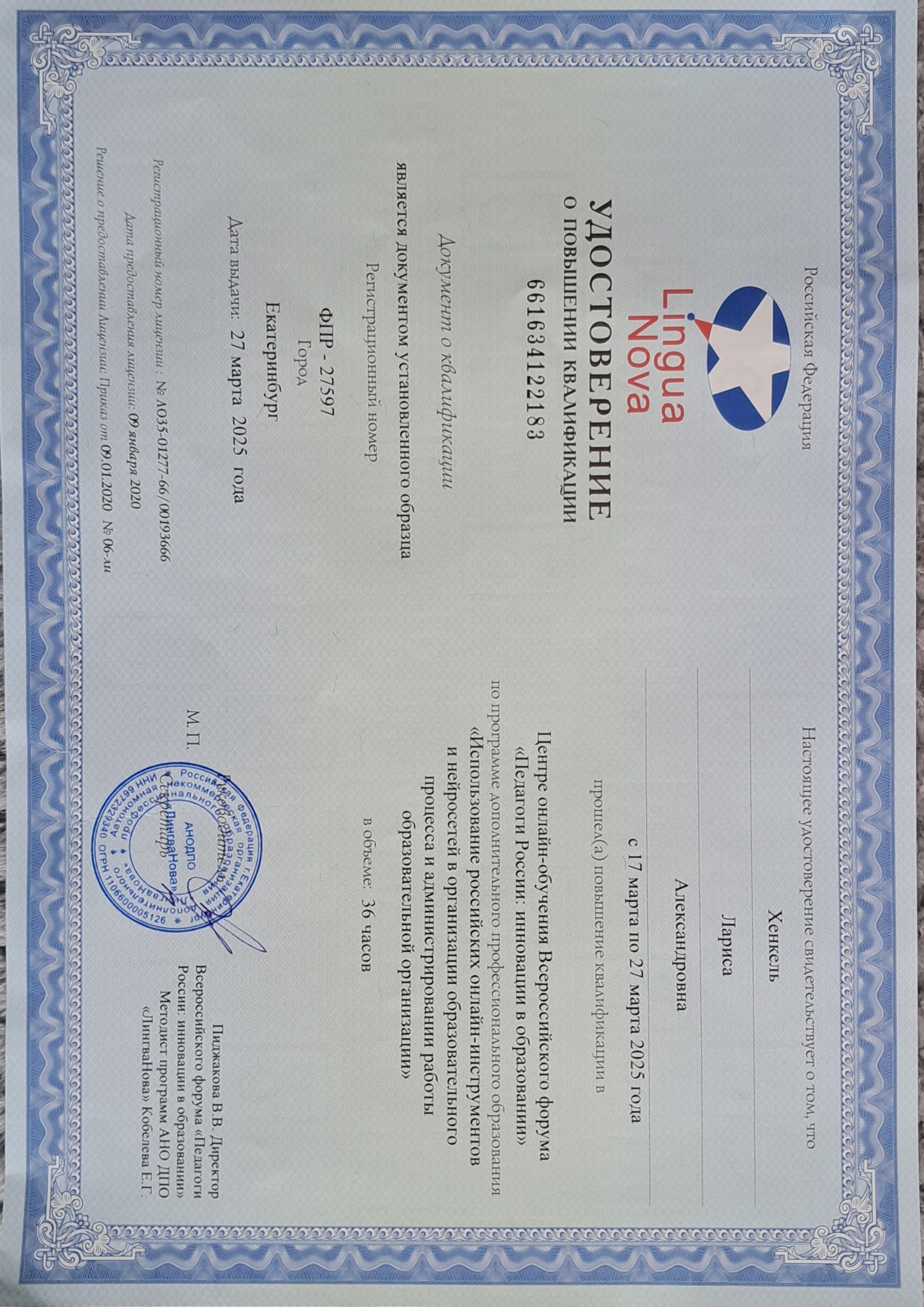 Повышение квалификации: «Робототехника в учреждениях дополнительного образовании», «Использование российских онлайн-инструментов и нейросетей в организации образовательного процесса и администрировании работы образовательной организации.
